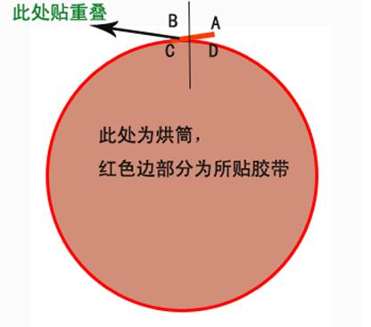 - 貼好鐵氟龍膠帶后細(xì)心反省膠帶與烘筒之間能否有小氣泡,若有,可以用大頭針之類的尖細(xì)物逐個掃除小氣泡,并抺平。B處膠帶,撕失落C處的膠帶,最終貼好B處,將B處和D處的膠帶抺平即可。