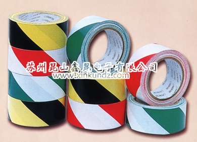 用于車間地板和地面的警示畫線粘貼使用,便于車間的管理.特性:以PVC薄膜為基材,使用橡膠型壓敏膠制造而成;耐磨、耐酸堿、耐油性佳;