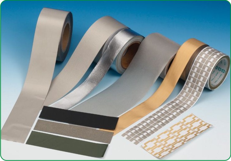 是在高強度的聚脂纖維布上鍍以金\銀\銅或鎳,再涂上高導電性的壓克力壓敏粘膠制作而成。它即具有金\銀\銅或鎳金屬的高導電性能,又具有纖維布卓越的薄、輕、柔軟性能,并易裁剪且堅久耐用,形成具有優(yōu)越的防電磁波干擾能力的EMI材料。所以導電布被廣泛應用於許多具有高附加價值的高階電子裝置,也廣泛用來製作成導電泡棉,填補產品的空隙,防止電磁波洩漏。另外,它還直接纏繞在筆記本電腦、液晶電視LCD\PDP等數據排線上以防止電磁干擾,屏蔽效果優(yōu)秀。