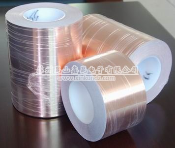雙導(dǎo)銅箔;基材:銅箔,傳導(dǎo)壓克力膠,粘性好,附著力強。性能:具有保溫,隔熱,防水,粘力佳,耐寒性好,易撕,可消除電磁干擾(EMI),隔離電磁波對人體的危害,避免電壓或電流影響功能,主要用于電腦顯示器電腦周邊線材與變壓器制造中央空調(diào)管線,抽煙機,冰箱,熱水器等的管線接縫,精密電子產(chǎn)品、電腦設(shè)備、電線、電纜等;高頻傳輸時,隔離電磁波干擾,耐高溫防止自燃,規(guī)格:(0.018mm-0.095mm)各種厚度,寬度可任意分切。